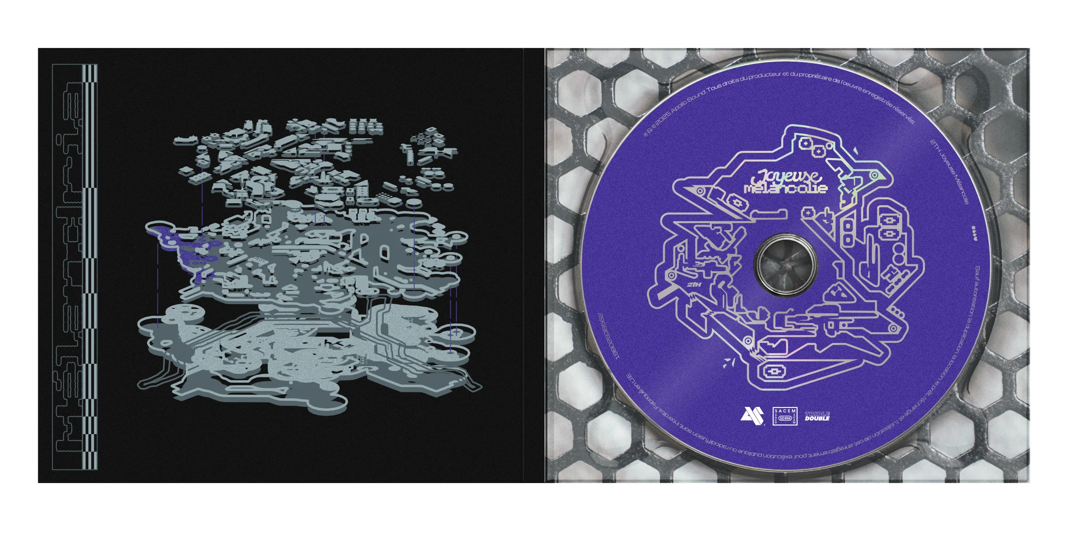 Graphisme et packaging CD pour le 1er album de 2TH "Joyeuse Mélancolie". Après m'avoir confié le graphisme de sa cover pour son EP "Les Prémices" (2024) ainsi que le logo 2THouse, l'artiste 2TH a renouvelé sa confiance pour la conception graphique de ce projet. Sorti le 27 juin 2025, édition CD. Photographie : Victor Marcadé, Valentin Folliet