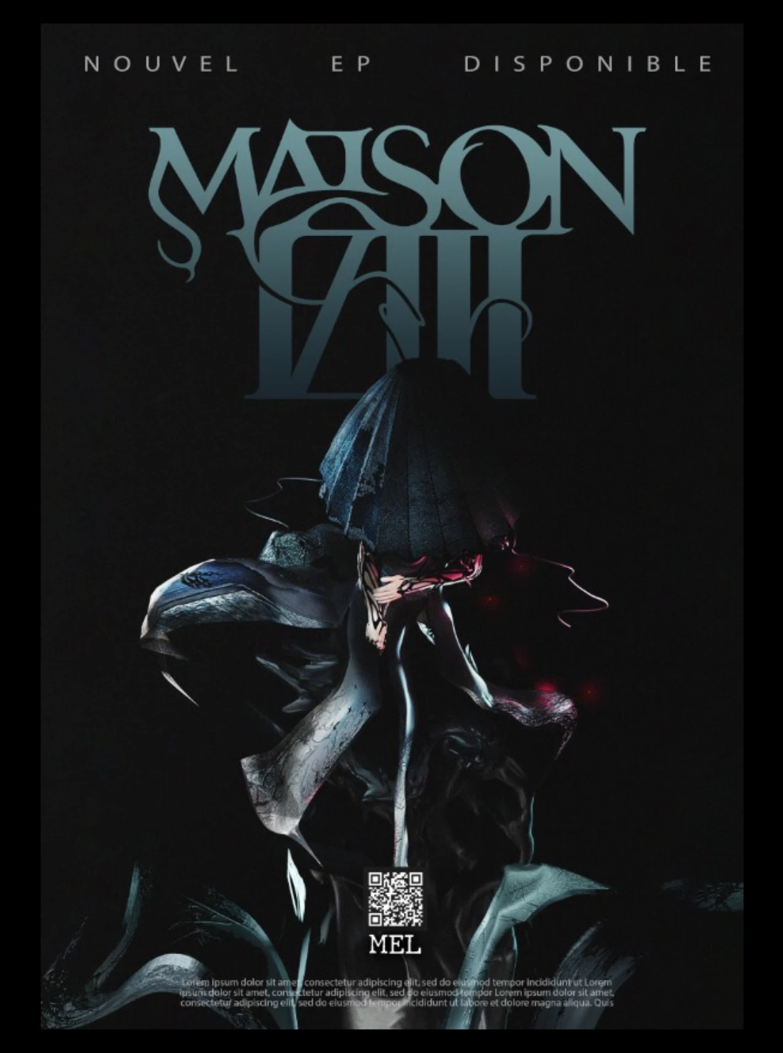 Création d'un titrage pour l'EP "Maison VIII" de MEL. La typographie très organique s'inspire des colonnes antiques et accompagne l'univers sombre et tranchant de la cover. Cover : Laura Hervé